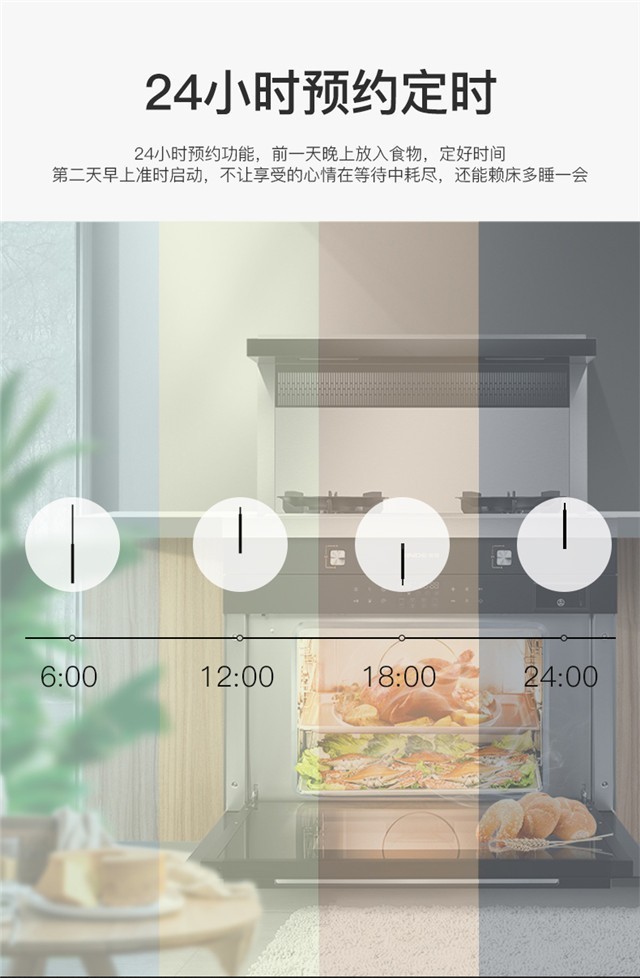 用上集成灶之后,我们就都解放了,24小时预约定时的功能太棒了。不管是想吃包子、粽子还是蒸饺,前一天晚上放进去定时预约,第二天起床就可以直接吃了,不耽误小孩上学也不影响自己上班。
