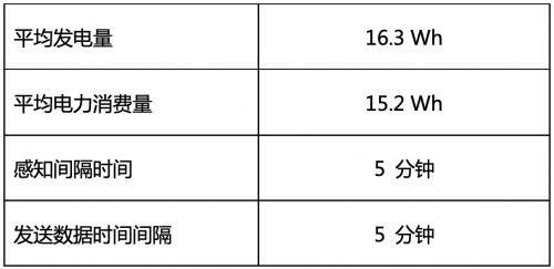实验中的发电量、以及感知和通信时消耗的电量平均值如下: