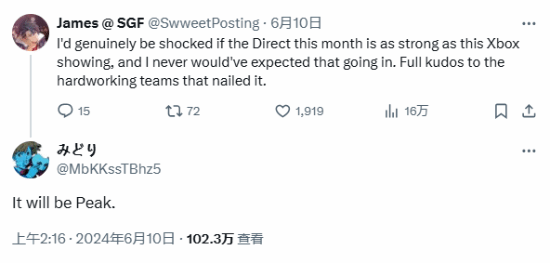 他表示:“如果本月任天堂直面会的质量能够像本次Xbox发布会那样,我真的会感到震惊。我从没想过会这样,向辛勤工作的团队致以崇高的敬意。” 这位玩家的话得到了大量网友的点赞支持和转发。